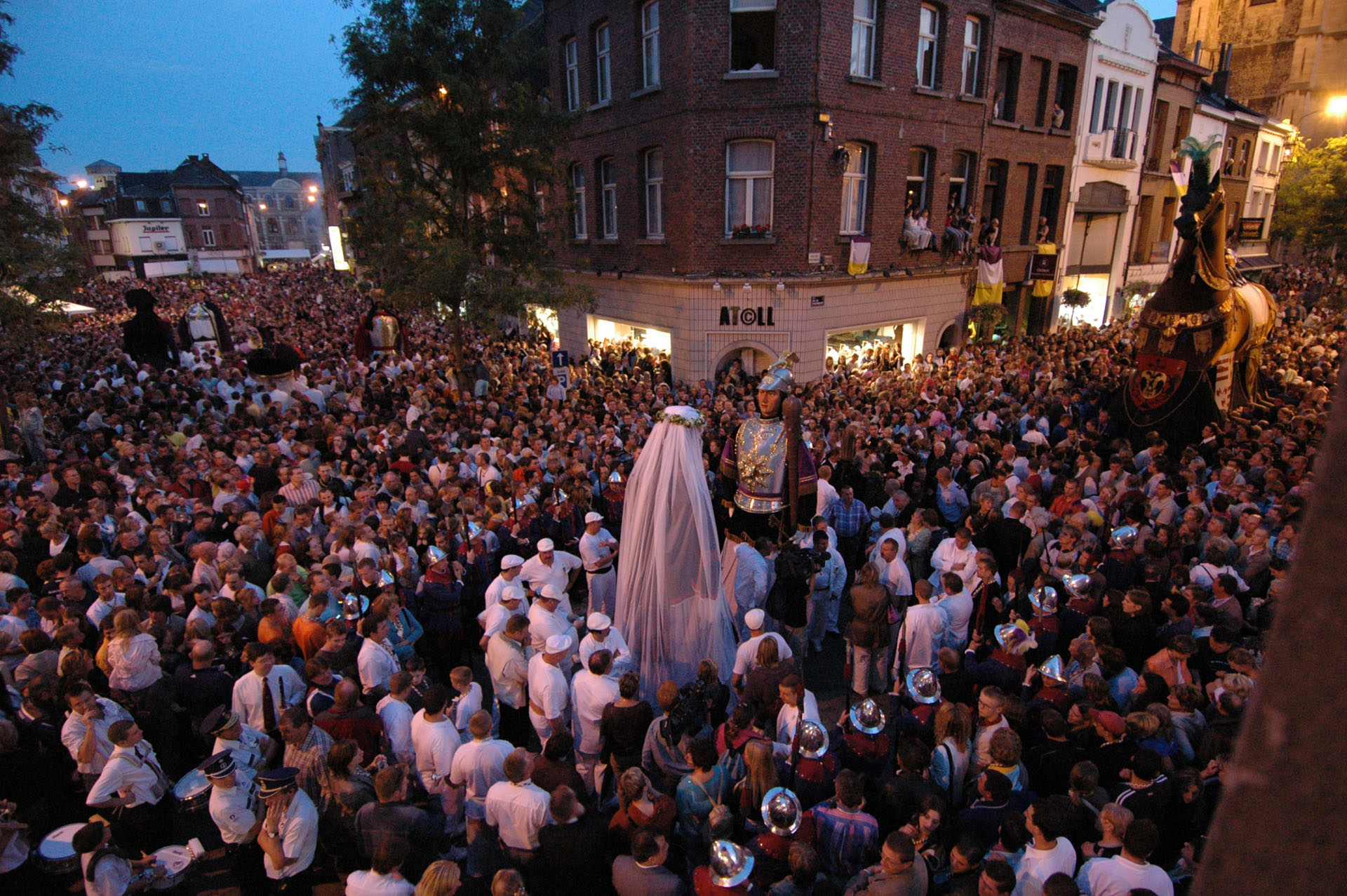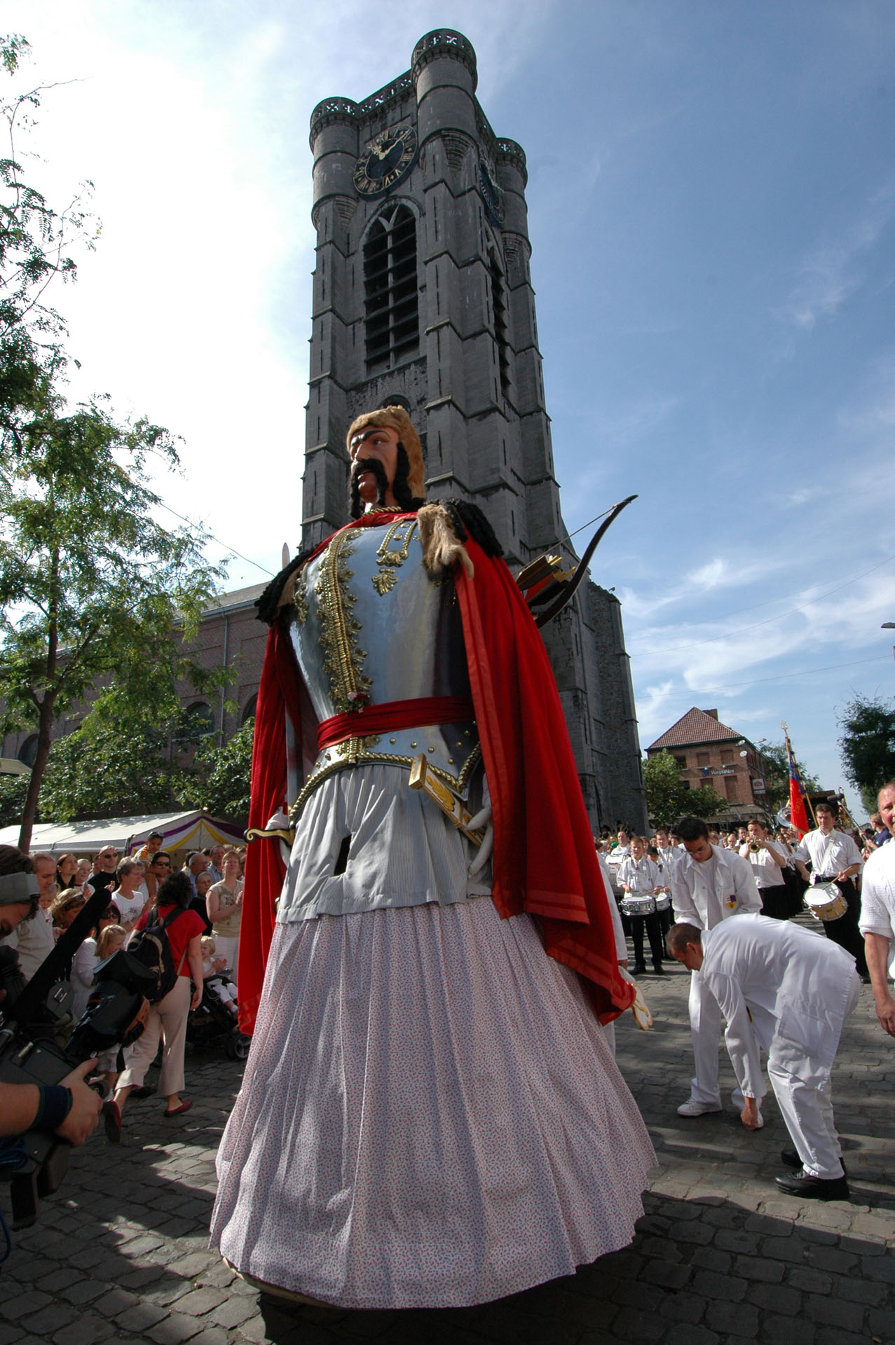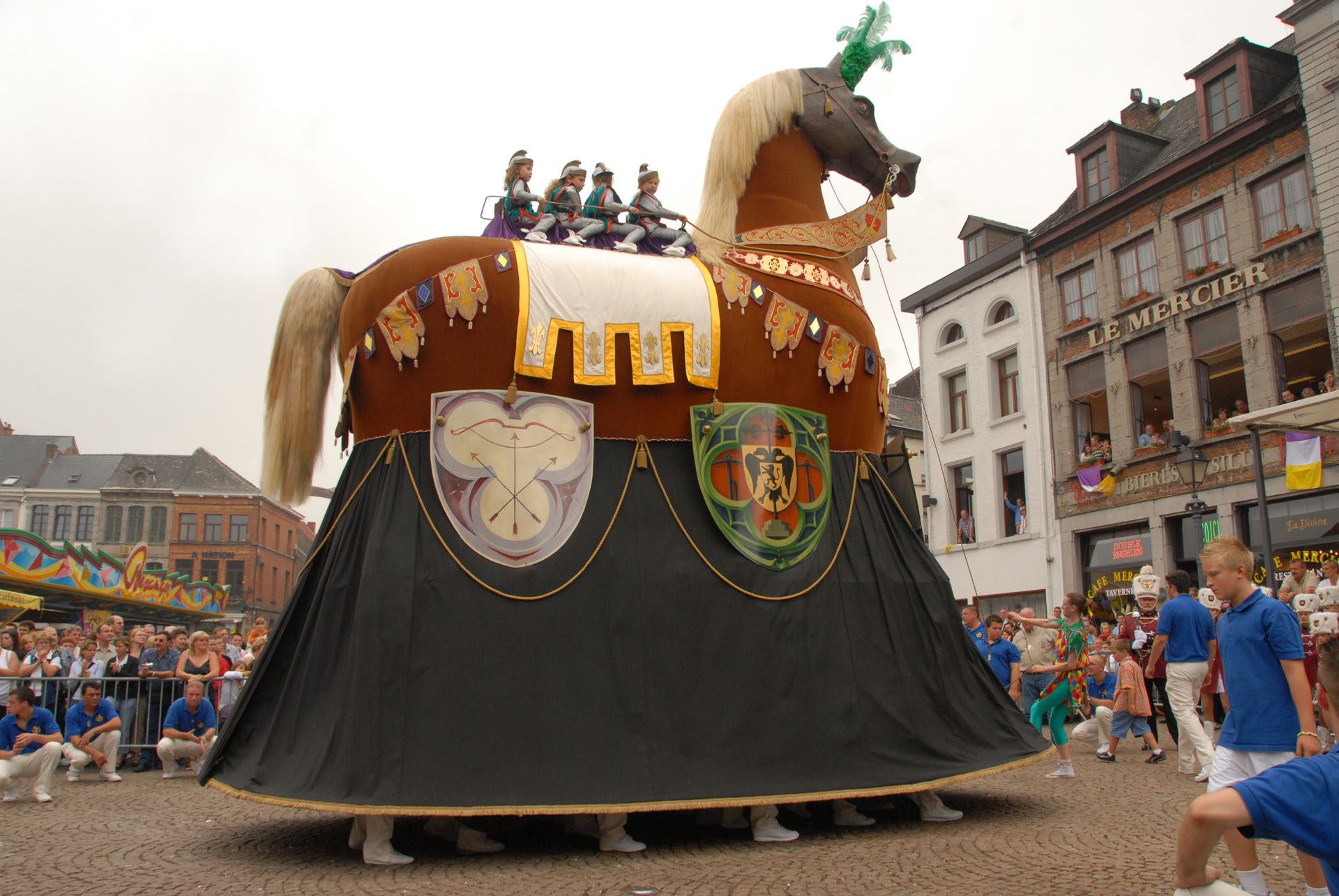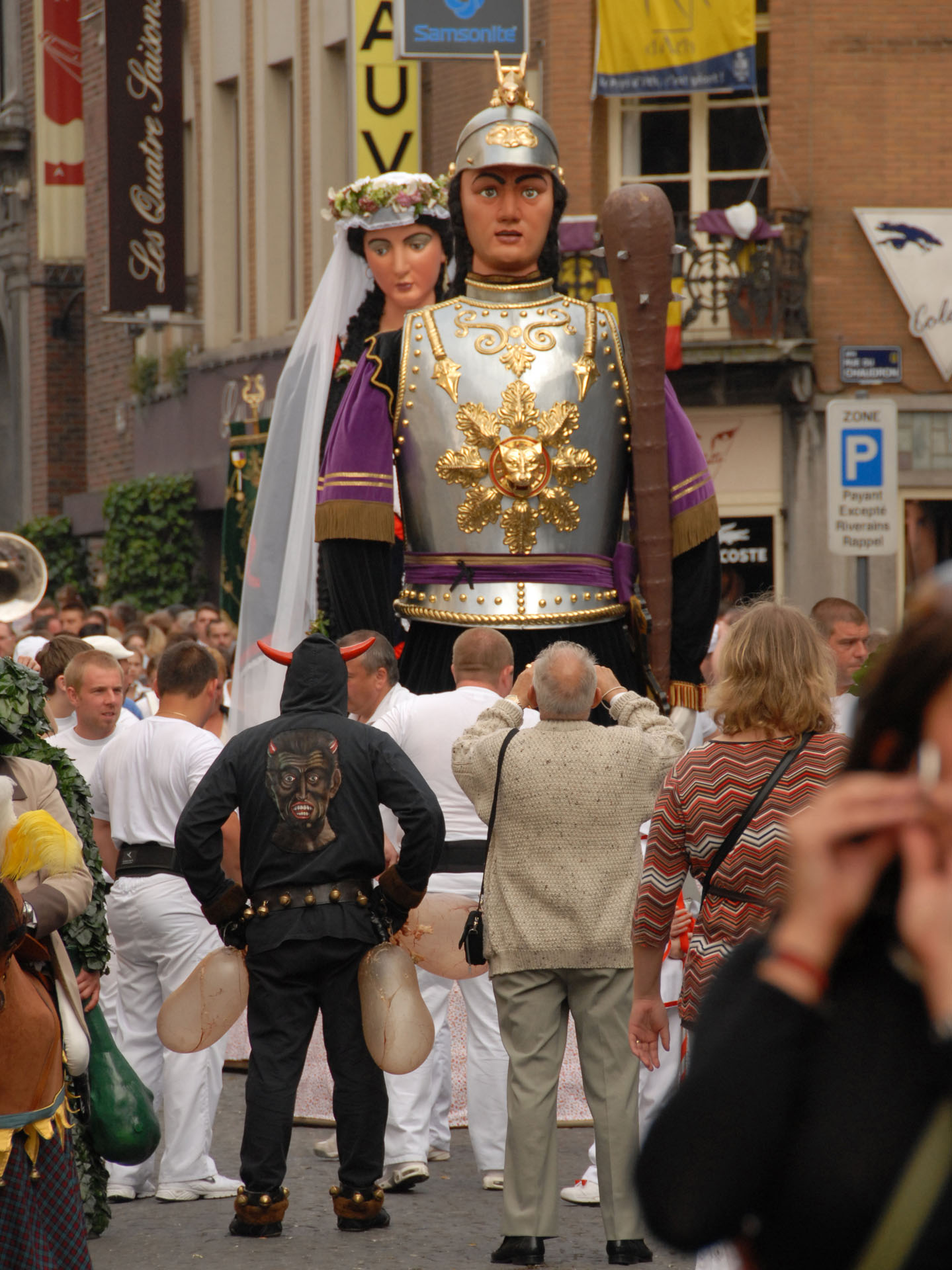 La ducasse d’Ath est unique par l’originalité de ses géants et de ses chars et suscite un enthousiasme impressionnant dans la population locale. Huit géants participent à ce spectacle et dansent au son des fanfares locales ou régionales. La ducasse d’Ath trouve ses origines dans la consécration de l’église paroissiale (dédicace) et existe depuis la fin du XIVe siècle. Les géants, comme le Cheval Bayard, symbole de l’épopée opposant Charlemagne aux quatre fils Aymon, furent intégrés dans la procession au XVe siècle. A l’époque, elle était organisée dans un but didactique et religieux. Au fur et à mesure, la procession devint plus laïque et de nouveaux personnages rejoignirent le géant Goliath : le Cheval-Diricq, les Hommes sauvages, le Diable Magnon, l’Aigle… et, en 1715, on donna une femme à Goliath. En 1794, tous les géants athois furent détruits sur la place publique à l’initiative des Jacobins, en tant que symboles de l’Ancien Régime. Ils furent réhabilités au début du XIXe siècle pour retrouver leur place dans la procession qui devint un cortège laïc.