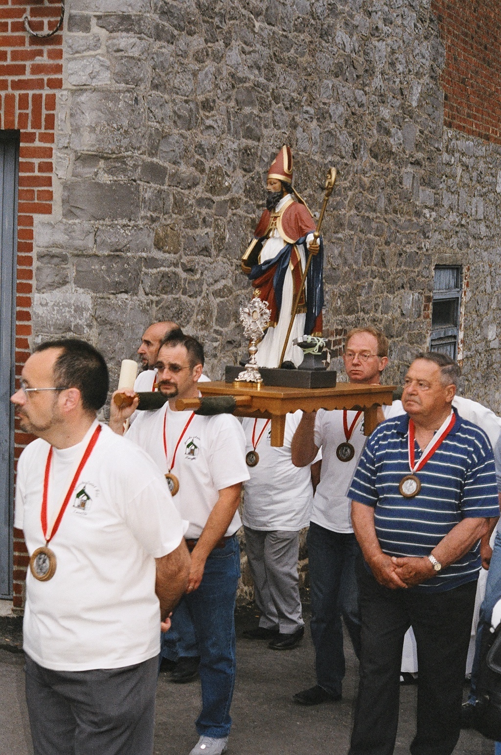 Saint Eloi est honoré au plus près du 25 juin, jour de la translation de ses reliques vers la cathédrale de Noyon en France en 1157. Patron des cultivateurs, des maréchaux-ferrants et des ouvriers du fer, il est également invoqué en lien avec les chevaux de trait et l’apaisement des chevaux turbulents. Ceci justifie la bénédiction des chevaux organisée lors de la marche Saint-Eloi à Laneffe. Précédées de la statue du saint, les montures sont menées à la fontaine où elles boivent l’eau bénite, font trois fois le tour de l’église et reçoivent une bénédiction, avant que ne soient distribués des petits pains et des fanions, autres symboles du saint.