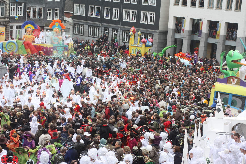 Les festivités débutent par le cortège nocturne du samedi soir qui est suivi d’un bal à l’abbaye. Le cortège du dimanche après-midi, apothéose de la fête, se compose de nombreux groupes – locaux, mais également internationaux – et des fameux chars souffleurs qui envoient des confettis jusqu’à l’intérieur des habitations… Les Blancs Moussis sont également de la partie et taquinent le public à l’aide de leurs différents accessoires (vessie de porc, balai, canne à pêche) et surtout des confettis. Attention : les femmes et les jeunes filles sont leurs cibles préférées. Certains Blancs Moussis, les Colleurs d’affiches, placardent façades, vitrines et les panneaux prévus à cet effet, de petits textes ironiques et incisifs qui se réfèrent à des événements vécus par les Stavelotains pendant l’année écoulée. Le soir, un grand feu d’artifice est tiré en prémisse à la Grande Nuit Blanche des Blancs Moussis à l’abbaye de Stavelot. Le lundi est consacré aux Rôles, revues satiriques en patois. L’après-midi, le cortège des sociétés folkloriques et locales anime la ville.