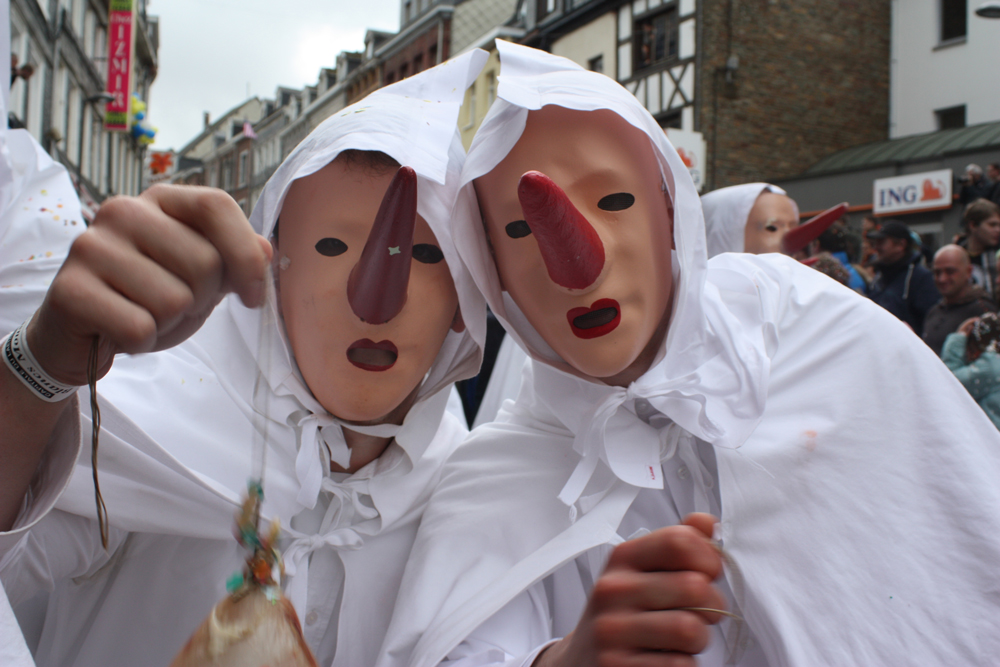 Le personnage central du Laetare de Stavelot est le Blanc Moussi. Il est célèbre bien au-delà des limites de Stavelot. D'après la légende, son origine remonte à la fin du moyen âge lorsque les moines de Stavelot se mêlaient à la foule lors des réjouissances carnavalesques. Après qu'en 1499 de sévères sanctions eurent été prises contre les moines dissolus par le Prince-Abbé Guillaume de Manderscheidt, la population stavelotaine rappela leur joyeuse et regrettée présence en s'affublant d'un capuchon et d'une grande robe imitant la bure monacale. Sur une nouvelle intervention du Prince-Abbé, ce vêtement parodique fut interdit. Les Stavelotains le remplacèrent alors par un autre, blanc celui-là, rappelant encore d'assez près la tenue religieuse et le complétèrent par le port d'un masque hilare au long nez.
