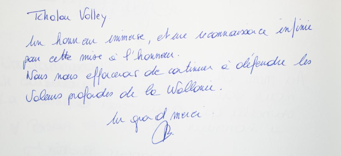 Un honneur immense et une reconnaissance infinie pour cette mise à l'honneur. Nous nous efforcerons de continuer à défendre les valeurs profondes de la Wallonie. Un grand merci.