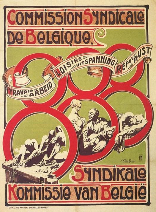 Le lever et le coucher du soleil sont restés pendant de nombreuses années les seuls critères déterminant la durée journalière du travail. L’introduction du dimanche comme jour férié a été une première évolution, tandis que la revendication de la journée des 8 heures s’impose comme la principale une fois le suffrage universel acquis. Après la Grande Guerre, sous le patronage du Bureau international du Travail, le temps de travail et la productivité sont appréhendés selon d’autres critères et, sous la pression ouvrière organisée en syndicats et partis politiques, le législateur intervient pour fixer des règles. Ainsi, après la fixation par convention sectorielle de la durée de travail à 8 heures par jour dans la sidérurgie et les mines dès novembre 1918, la généralisation des 8 heures dans toutes les branches d’activités ainsi que dans le secteur public est figée dans la loi belge du 14 juin 1921. Le régime des 48 heures/semaine entre également en vigueur sans que les salaires soient diminués. Le nom de Joseph Wauters est indissociablement lié à cette avancée sociale considérable.