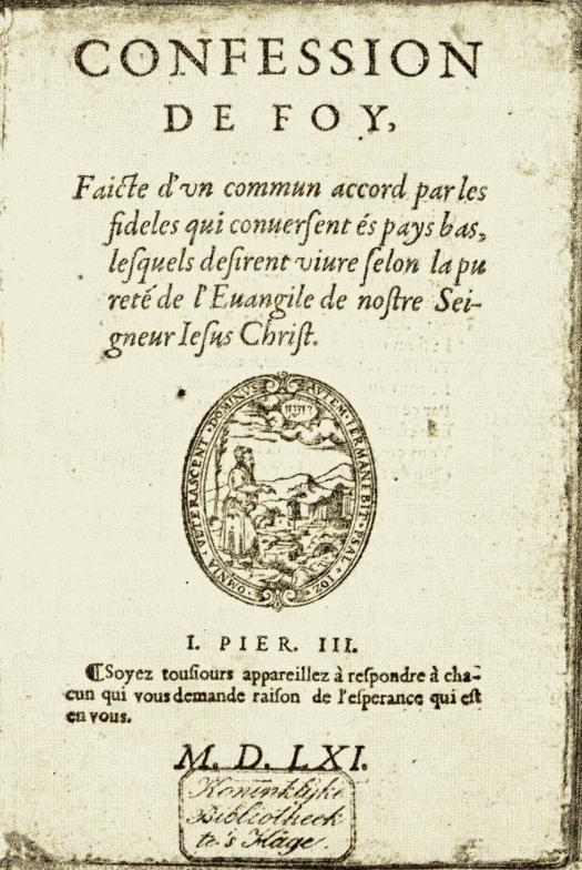 Les idées de la Réforme gagnent rapidement les Pays-Bas de Charles-Quint et Philippe II ; plusieurs foyers importants se développent suscitant une virulente réaction de Madrid. Pour éviter les persécutions de Philippe II, se constituent des communautés clandestines désireuses de continuer à cultiver les idées de Calvin. Sur le modèle de la confession de foi des Églises de France, Guy de Brès rédige, en français d’abord, la Confession de foy qui est une sorte de manifeste destiné à convaincre Philippe II de la fidélité des réformés à son autorité. Traduit en latin avec une variation du nom, la Confessio belgica fédère l’ensemble des « Églises wallonnes » des provinces méridionales des Pays-Bas.