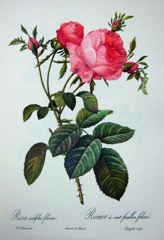 P-J. Redouté, Rosier à cent feuilles, foliacé