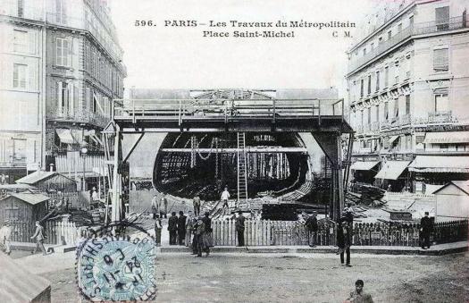 Carte postale des travaux du métropolitain de Paris, 1906. Station Saint-Michel, ligne 4 – CM n°595 © free