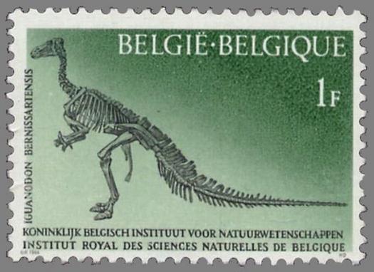 Iguanodon de Bernissart : « patrimoine scientifique », timbre-poste belge, émis le 28 mai 1966.