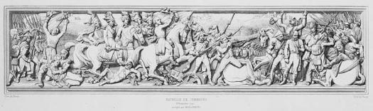Représentation de la bataille de Jemappes sur le fronton de l’Arc de Triomphe de Paris – Diffusion Institut Destrée © Sofam