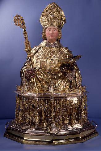 Symbole de la patrie liégeoise, saint patron du diocèse, Saint-Lambert s’est vu offrir un reliquaire à la mesure de son statut. Réalisé avant 1512 par Hans von Reutlingen, orfèvre travaillant dans un atelier d’Aix-la-Chapelle, le buste-reliquaire de Saint-Lambert est le plus grand conservé en Europe, du moins dans son genre et son style du gothique tardif (159 x 107 x 79 cm). Conçu autour de la relique du crâne du martyr, cet objet ostentatoire qui a participé aux grandes cérémonies politico-religieuses de l’Ancien Régime est une pièce d’orfèvrerie en argent repoussé, ciselé et gravé, en partie doré. La polychromie du visage remonte vraisemblablement du XVIIIe siècle et la crosse a été refaite au XIXe siècle. Ceinturé à sa base de six niches racontant la vie de Lambert, le buste-reliquaire de Saint-Lambert est l’une des pièces majeures du Trésor de la cathédrale Saint-Paul. Par son iconographie et son symbolisme, il est un témoin parfait du Moyen Âge. Il a été classé parmi les biens exceptionnels de Wallonie par la Fédération Wallonie-Bruxelles.